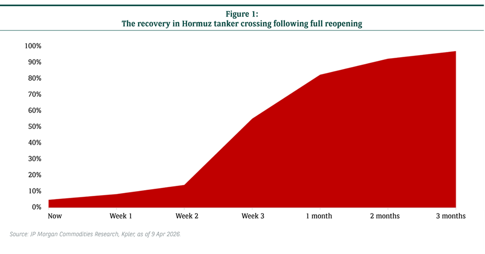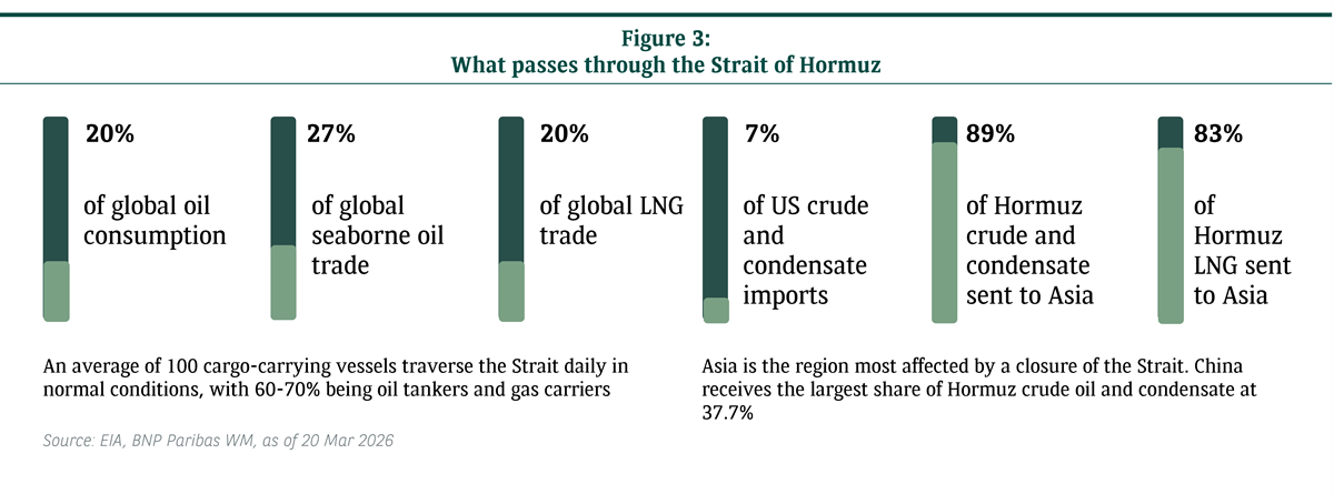 The global economy is now grappling with the impact of a longer-than-anticipated disruption in the oil supply. In fact, given that the oil tankers typically take more than a month to reach Asia from the Middle East (89% of Hormuz crude and condensate is sent to Asia, see Figure 3), the East is only now beginning to feel the price pinch. Going forward, the key to stabilising oil prices will be determined by the pace of reopening the Strait of Hormuz and how quickly supply can be restored to pre-war levels. Of course, this also hinges on no further escalation to the current ceasefire.