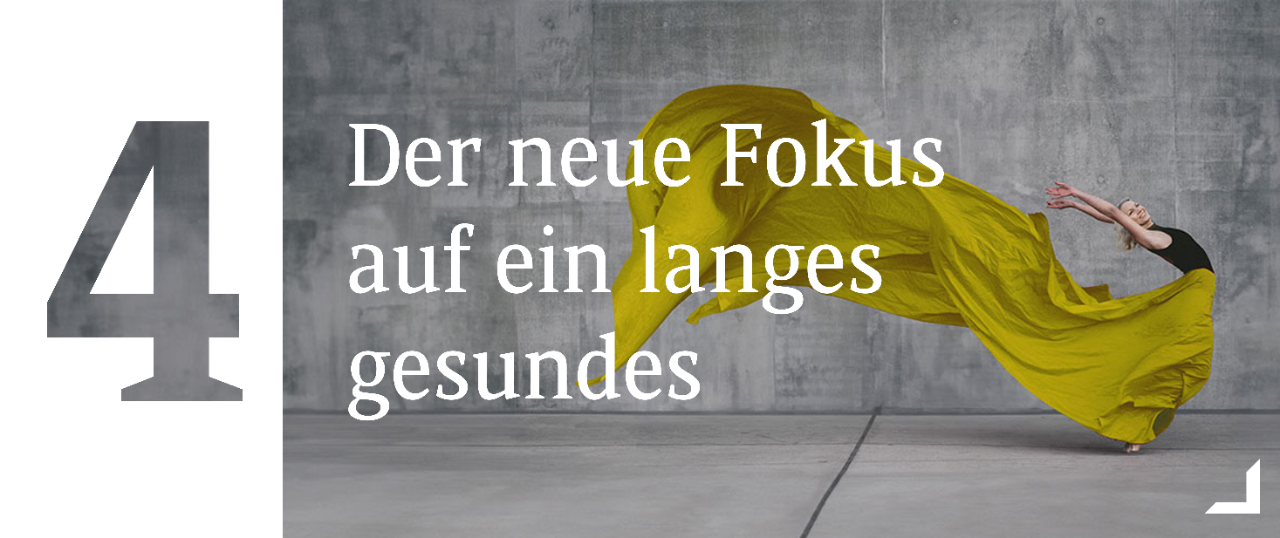 „Gesundheit ist das höchste Gut“, wie ein altes Sprichwort besagt. Mehrere Studien in den USA haben gezeigt, dass das Aufrechterhalten von fünf gesunden Gewohnheiten rund um Ernährung, Bewegung, Zigarettenverzicht, mäßigen Alkoholkonsum und ein gesundes Körpergewicht die Lebenserwartung um mehr als ein Jahrzehnt verlängern kann. Heute leben die Menschen in den Industrie- und Entwicklungsländern länger, vor allem weil der Konsum von Alkohol und Tabak zurückgeht. Allerdings dürfen wir uns nicht nur auf die Lebensdauer konzentrieren, sondern vielmehr auf die gesunde Lebensspanne.