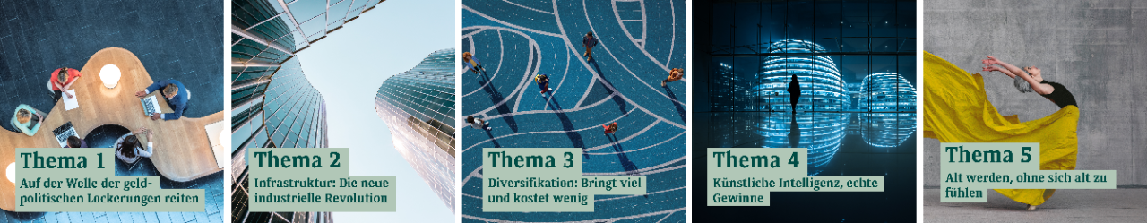Aus unserer Sicht sollten Anleger 2025 einigen wichtigen Trends besondere Aufmerksamkeit schenken: