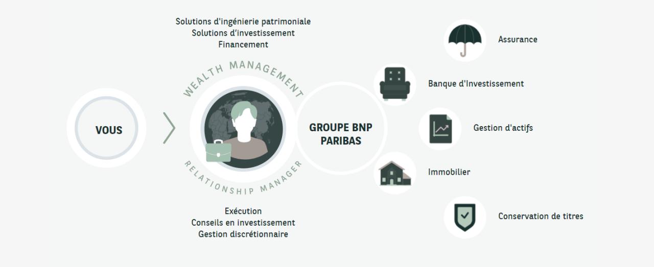 Présent en Suisse depuis 1872, BNP Paribas Wealth Management Suisse figure parmi les meilleures banques privées mondiales. Du conseil en allocation d’actifs à la gestion discrétionnaire et aux services patrimoniaux, nous répondons à l'ensemble de vos exigences, avec l’appui de professionnels reconnus. Nous créons un point de départ pour développer vos affaires et contribuons à l'élaboration de vos décisions financières stratégiques.