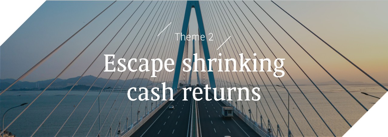 - Inflation proves sticky: central banks are forced to halt or even hike rates, keeping cash yields higher for longer and thus reducing the urgency for investors to move out of deposits.